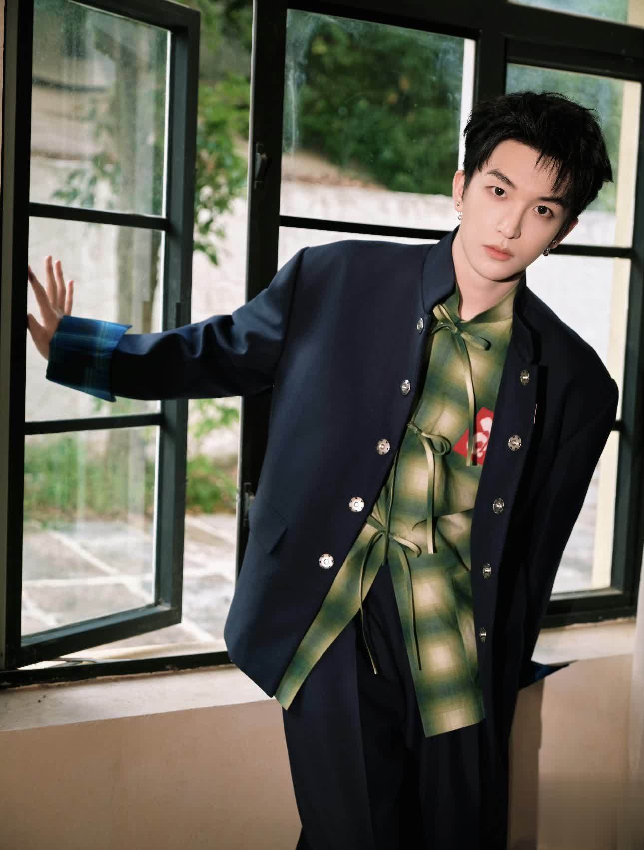 王子弘凡虽是黑色中山服,但采用了金属扣作为点缀,增加色彩空间,内搭选择的是一件亮色系衬衫,吸睛的配色和蝴蝶结的设计更有时尚潮流,古今碰撞的时尚。
