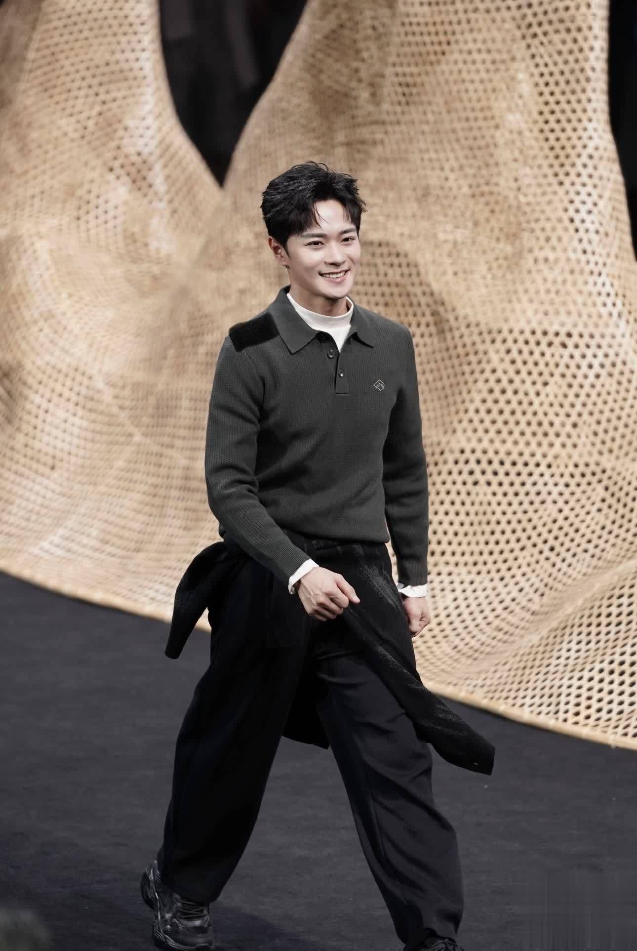 曹骏身穿灰色针织上衣,叠穿一件白色内搭,下身则是基础款长裤叠穿黑银围帘翩翩而来,与生俱来的国泰民安气质。