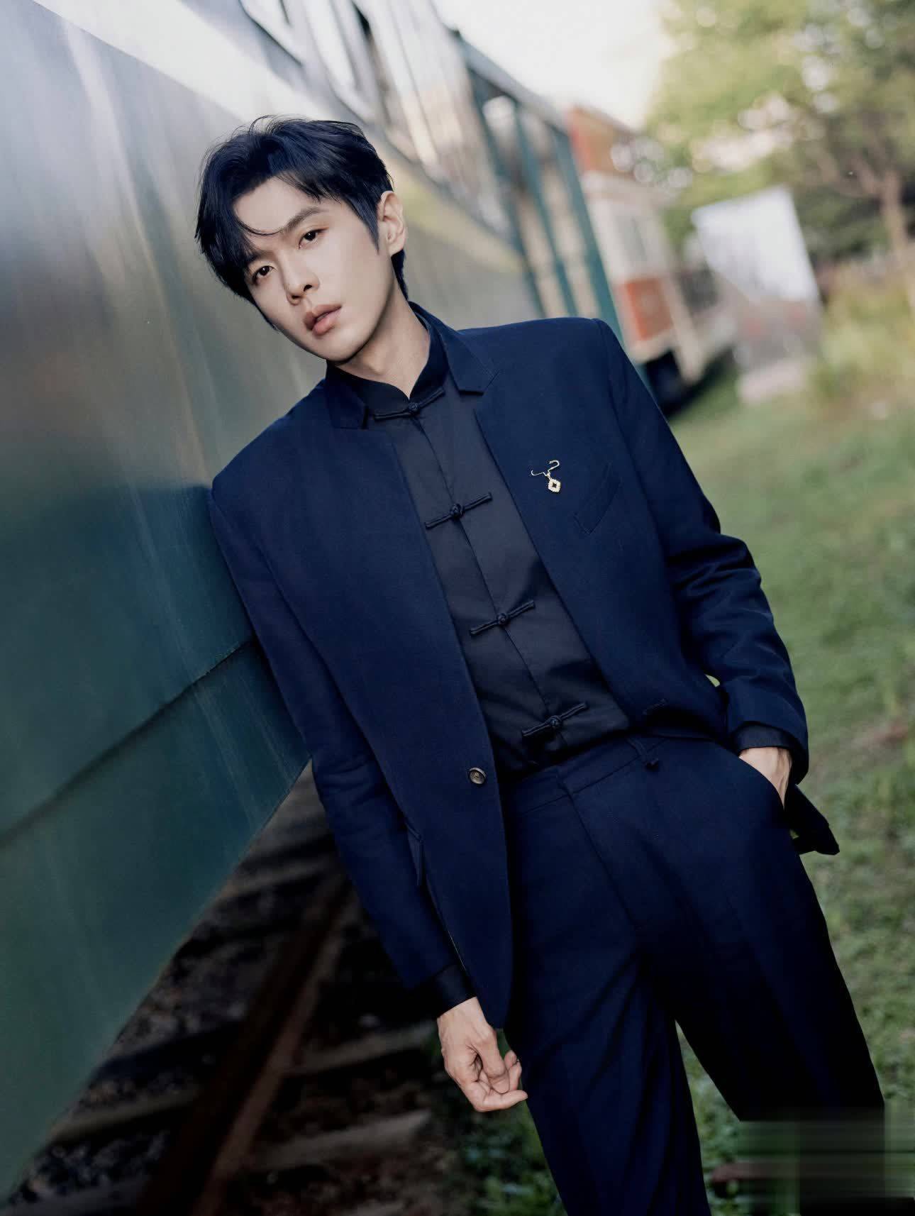 张若昀则是在西服内搭上“大做文章”,立领盘扣衬衫采取真丝面料,不论是光泽感还是垂坠感都是极佳,和西服搭配在一起尽显华贵。
